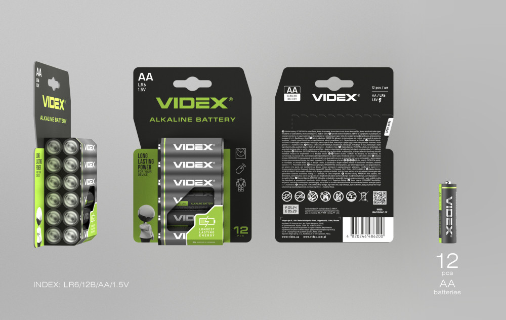 Alkaline battery VIDEX LR6/AA 12pcs Blister Card 1,5V, 2600mAh