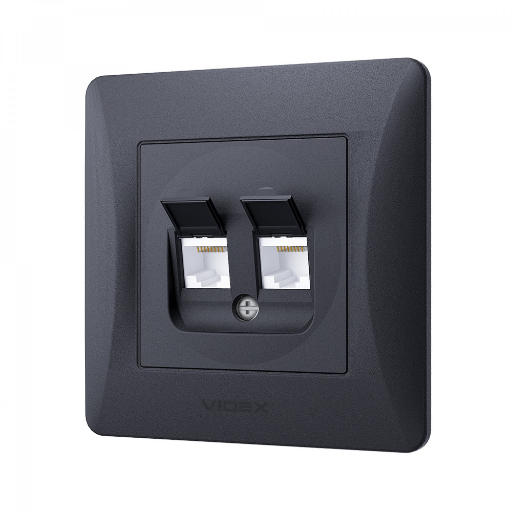 Socket CAT6+CAT6 int. double black graphite VIDEX BINERA VF-BNSK2PC6-BG