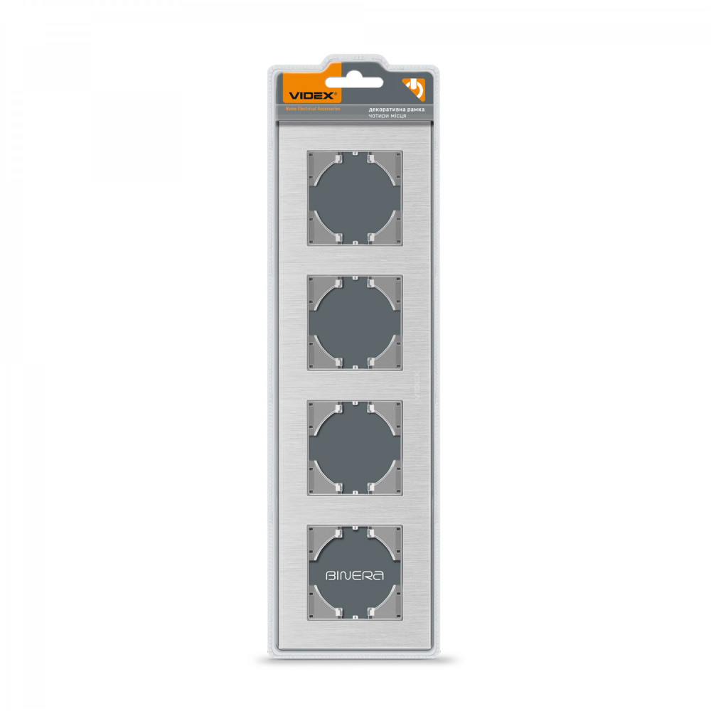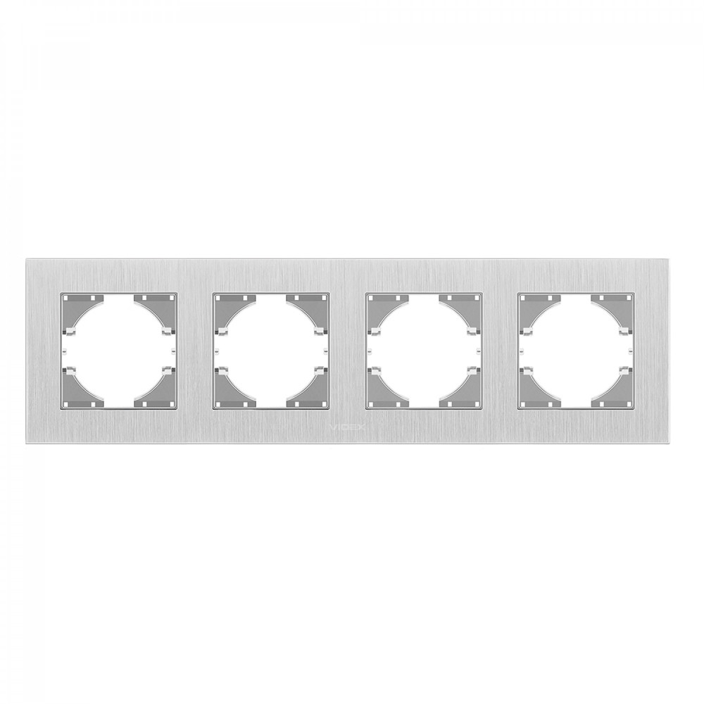 Frame silver aluminum 4 gang horizontal VIDEX BINERA VF-BNFRA4H-SL