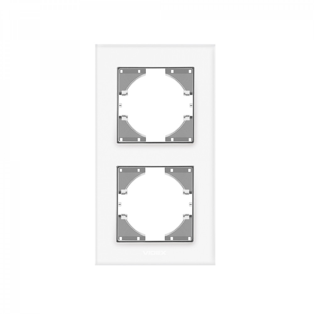 Frame white glass 2 gang vertical VIDEX BINERA VF-BNFRG2V-W