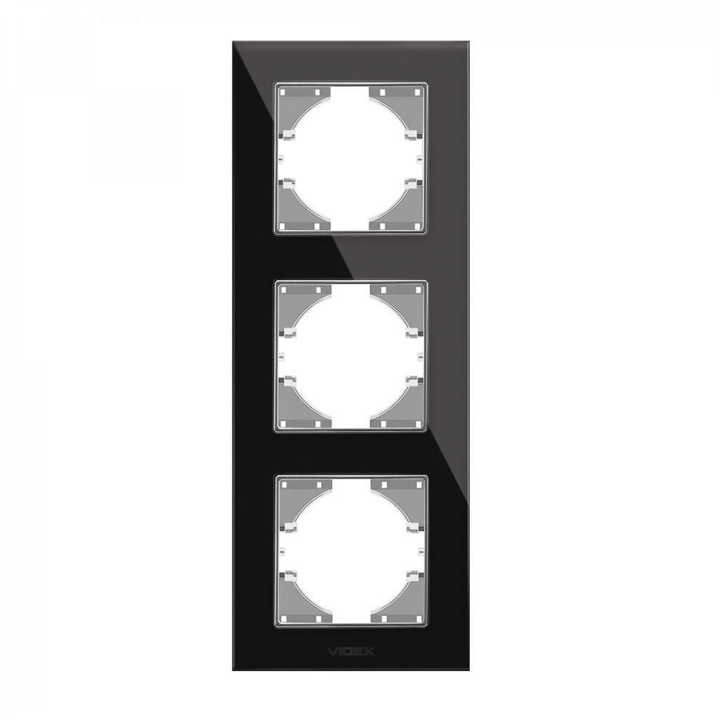 Frame black glass 3 gang vertical VIDEX BINERA VF-BNFRG3V-B