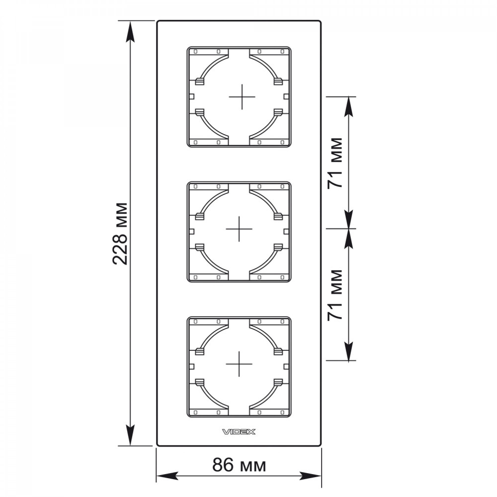 Frame white glass 3 gang vertical VIDEX BINERA VF-BNFRG3V-W