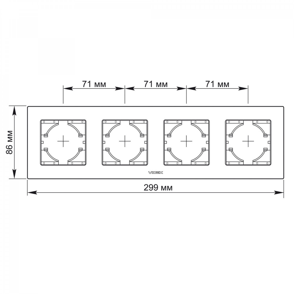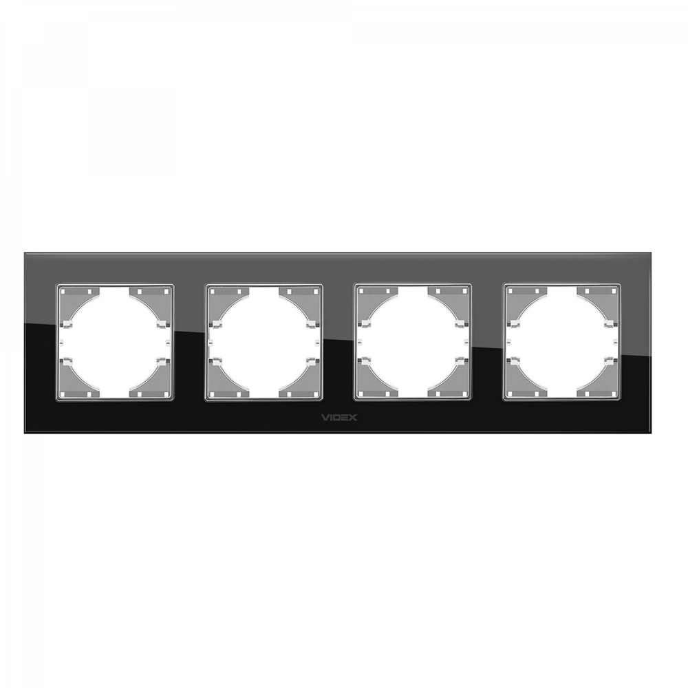 Frame black glass 4 gang horizontal VIDEX BINERA VF-BNFRG4H-B