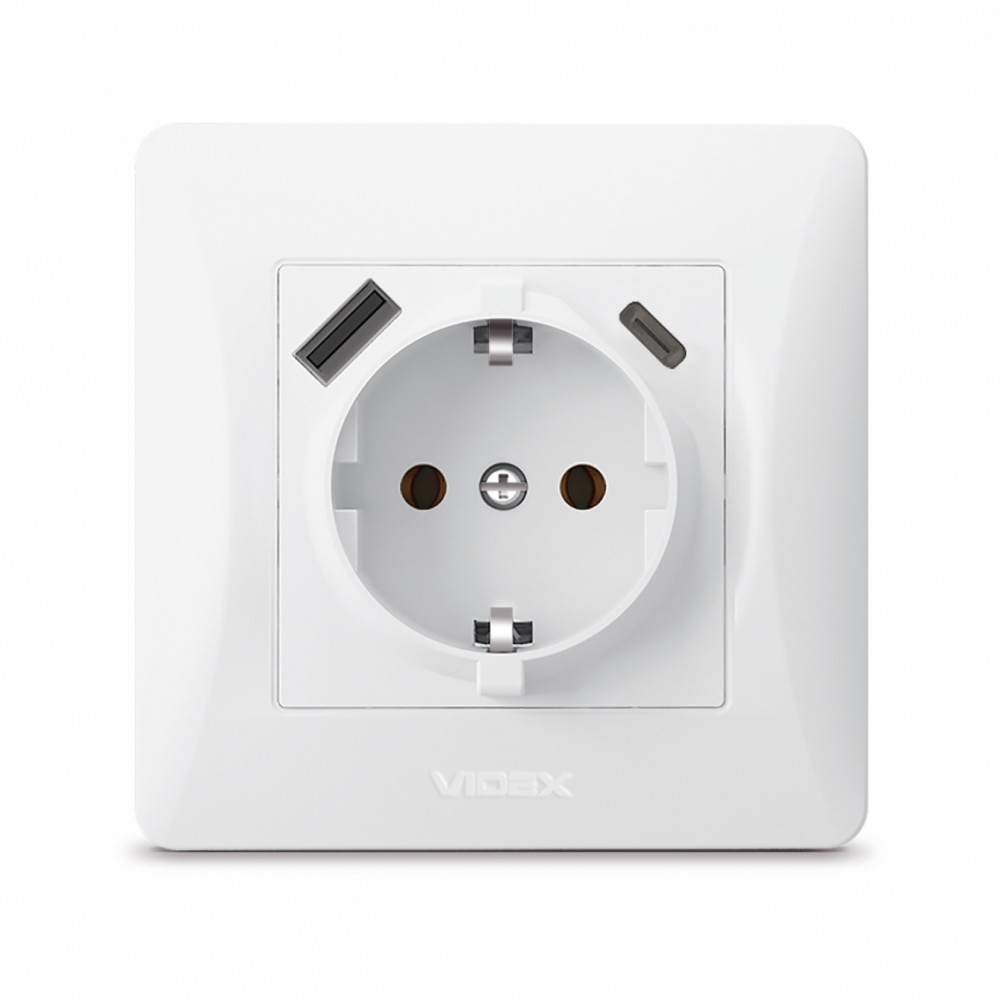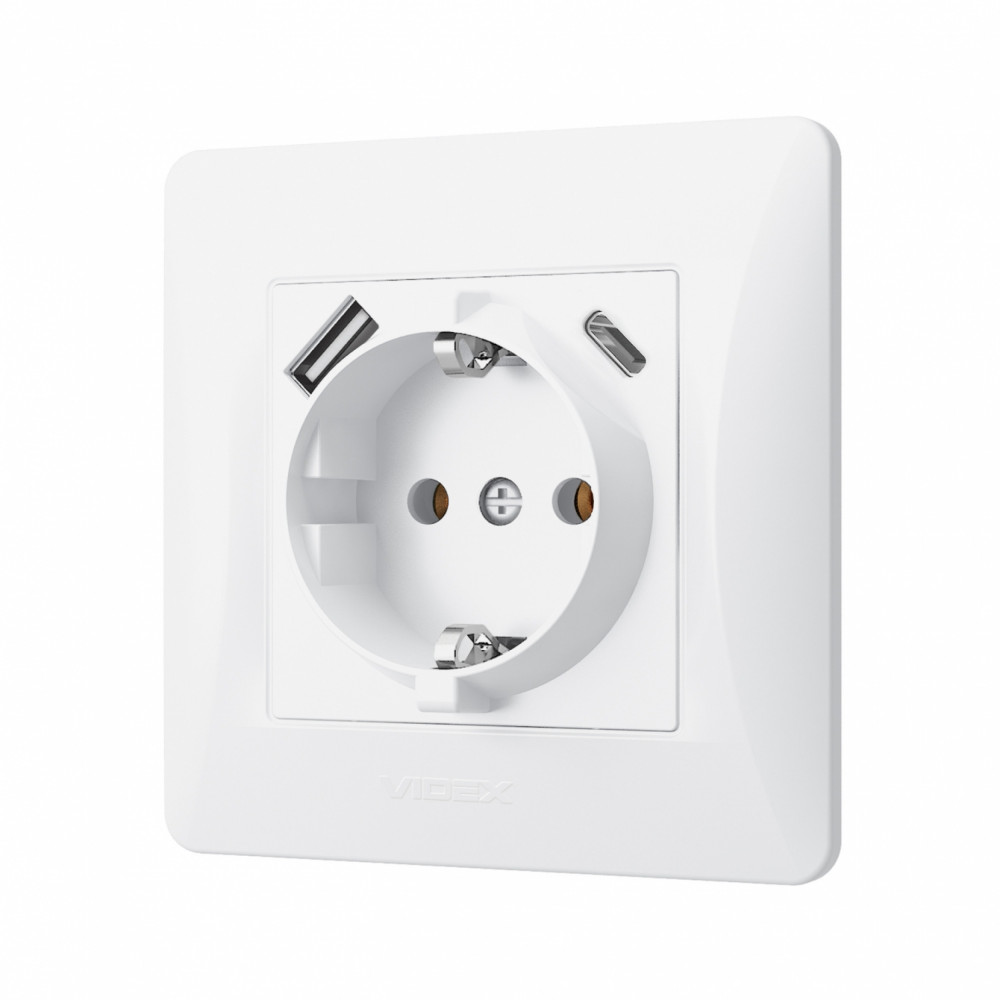 Socket single Schuko/French + (USB-A + USB-C) white VIDEX BINERA VF-BNSK1GUC-W