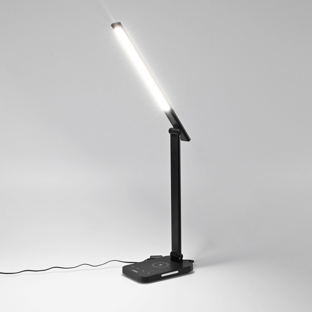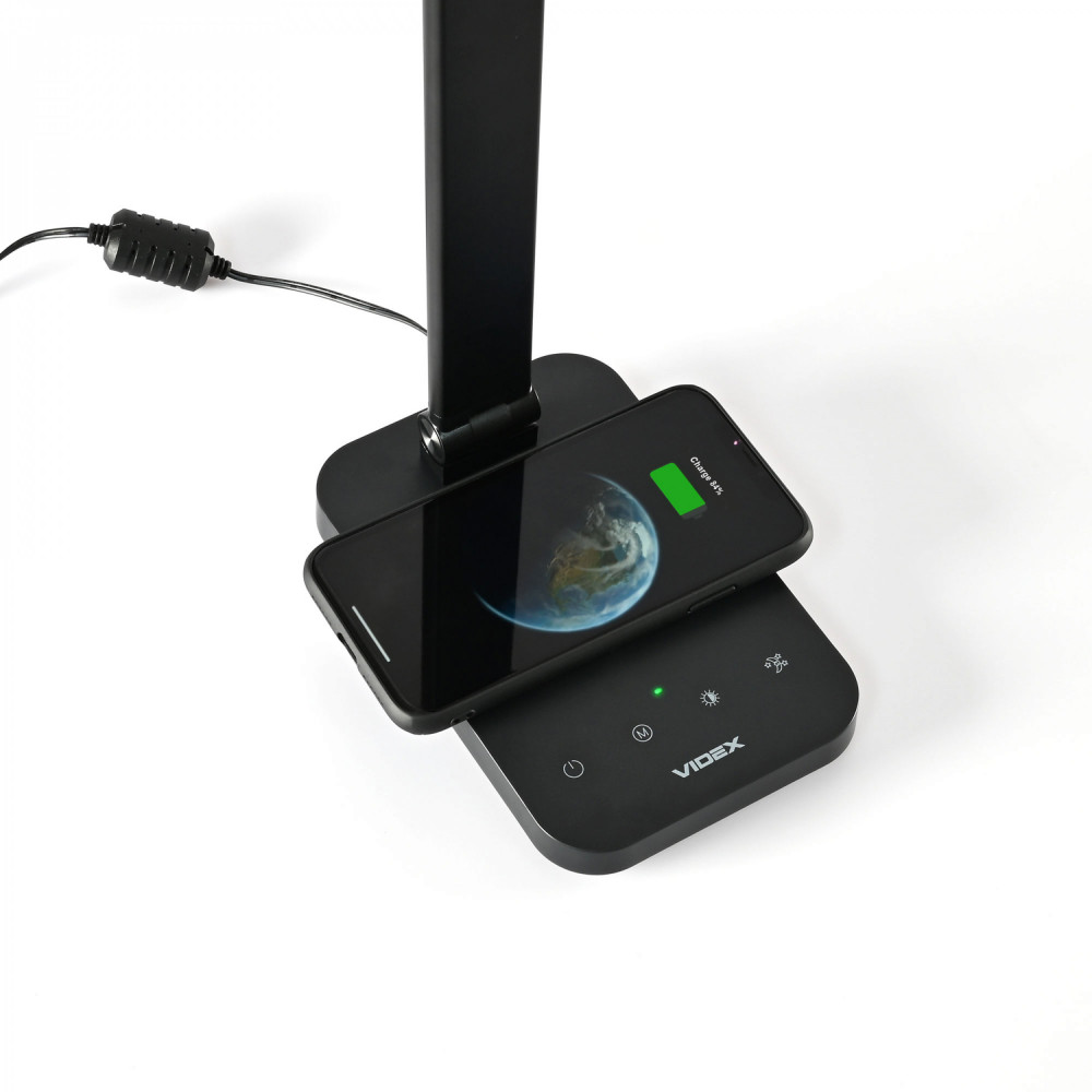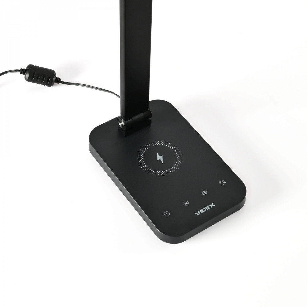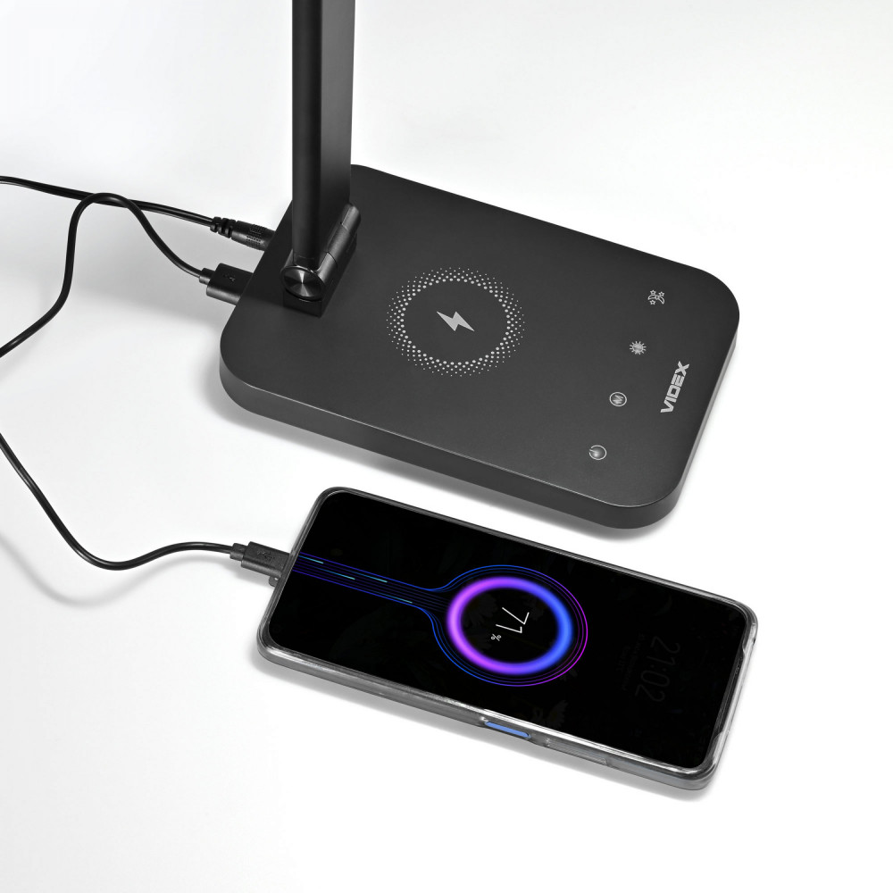 The VIDEX LED table lamp is a multifunctional lighting device that will be an excellent choice for studying, reading or working in the office. A wide range of modes is provided for comfortable work or study: *Colour temperature change - 3000K warm white, 4000K neutral white, 5500K almost cold white. *Brightness change - 5 levels. *Management is carried out with touch-sensitive buttons. The backlight can be turned off by pressing and holding the ON/OFF button for 3 seconds. The lamp has a long service life of 40,000 hours. The light of the lamp does not flicker and does not tire the eyes during long-term use. Wireless charging area - 8W: Place the smartphone (which supports wireless charging) in the wireless charging area, the indicator will keep on, then the smartphone will switch to charging state. If your smartphone does not show charging, please try to adjust its position until it can be charged (or make sure your phone supports wireless charging). Wireless charger indicator lights: a. During charging: the green light stays on; b. Foreign object: green light flashes quickly; c. Error: Green light flashes quickly; d. Power is on: the green light will blink once. Note: USB output 5V/1.5A (with overload protection) in the case of wireless charging, the USB output function is automatically disconnected.