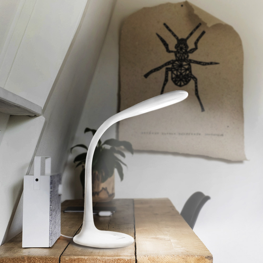 The LED table lamp VIDEX is an energy-efficient lighting device that can change the color temperature (3000K warm white, 4000K neutral white, 5500K almost cold white) and brightness (3 levels). Control is carried out with the help of one touch-sensitive button. A great choice for studying, reading or working in the office. The lamp can work both from the included adapter and from the USB port of the computer. The light of the lamp does not flicker and does not tire the eyes during long-term use.