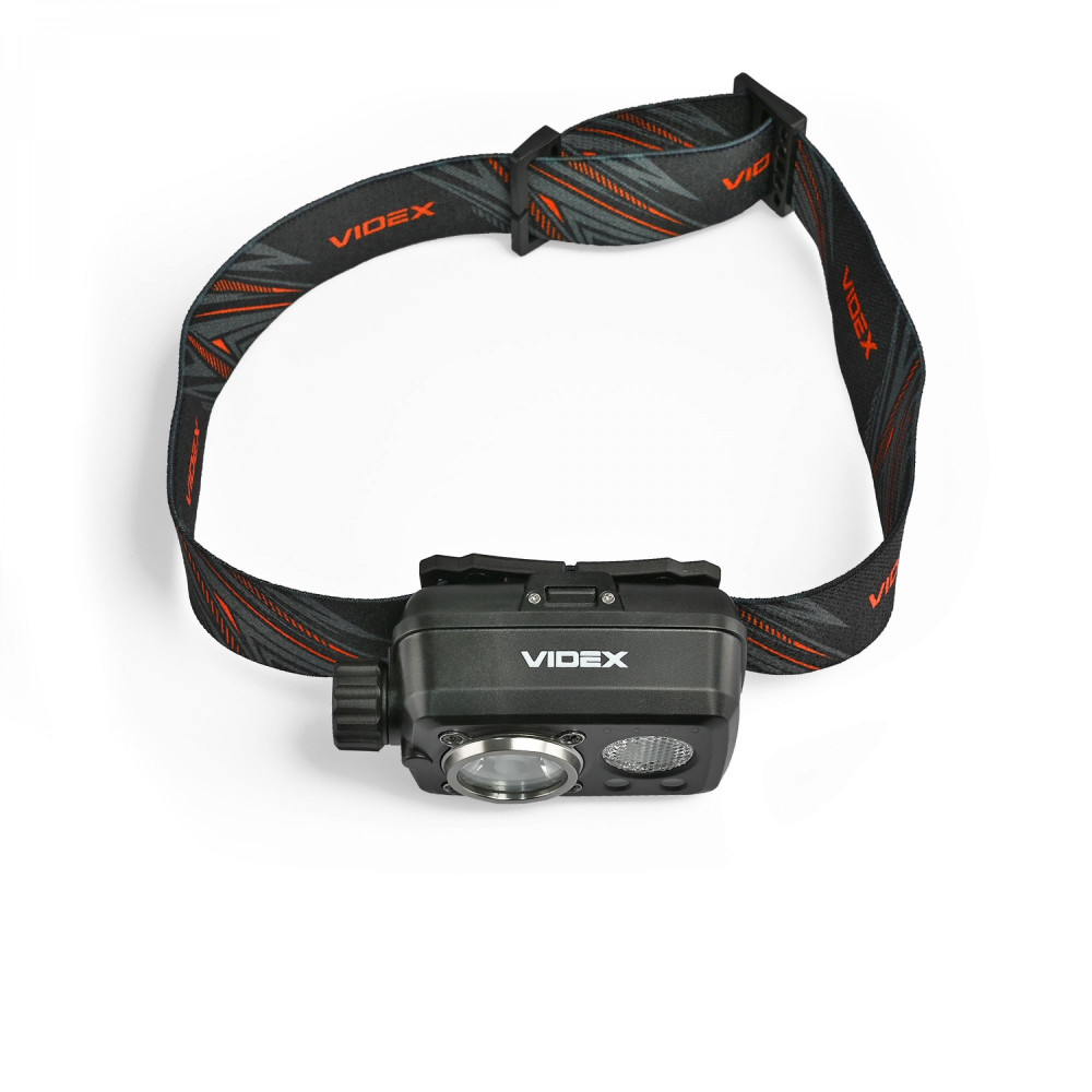 LED Headlamp VIDEX VLF-H189 600Lm 5000K is designed for individual use during nighttime or in unlit indoor areas. Its key features include water and dust resistance, a durable body, and long-range illumination. The headlamp allows you to select not only the desired operating mode but also the light color: white or red. The tilt angle can be adjusted simply by tilting the lamp up or down. A unique feature of this headlamp is the touch control function using a sensor. The package includes a head strap made of wear-resistant, soft-textured material, ensuring comfortable use. Maximum brightness is 600Lm. The headlamp has Luminus SST20 10W and SMD2835 3W LEDs, providing high brightness and energy efficiency. Headlamp Operation 1. To turn on the headlamp and switch between lighting modes, rotate the rotary switch. 2. Pressing the button briefly (0.5 sec) activates the red light or turns it off, depending on its current state. 3. When red light is activated, a simple press of the button switches between its modes. 4. Pressing the button once on a turned-off headlamp displays the battery level. 5. To activate touch control, follow these steps: select the desired white light mode, then press the button. The sensor is now activated, and you can turn the light on or off with a hand wave. Press the button again to deactivate the sensor. Operating Modes: - TURBO (Turbo Mode) – maximum brightness of 600Lm. Lighting distance: 185m. Runtime: 3 hours. Luminous intensity: 10800cd. The TURBO runtime is the total time tested with overheating protection enabled. - HIGH (High Power Mode) – brightness of 500Lm. Lighting distance: 185m. Runtime: 6 hours. Luminous intensity: 8700cd. - MIDDLE (Medium Power Mode) – brightness of 100Lm. Lighting distance: 80m. Runtime: 10 hours. Luminous intensity: 1600cd. - LOW (Low Power Mode) – brightness of 25Lm. Lighting distance: 40m. Runtime: 42 hours. Luminous intensity: 400cd. - FLOOD HIGH (High-Power Flood Light) – brightness of 100Lm. Lighting distance: 30m. Runtime: 8 hours. Luminous intensity: 230cd. - FLOOD LOW (Low-Power Flood Light) – brightness of 15Lm. Lighting distance: 10m. Runtime: 47 hours. Luminous intensity: 30cd. - RED (Red Light) – brightness of 10Lm. Lighting distance: 16m. Runtime: 15 hours. Luminous intensity: 62cd. - RED FLASH (Flashing Red Light) – brightness of 5Lm. Lighting distance: 10m. Runtime: 18 hours. Luminous intensity: 44cd. The above parameters may vary depending on environmental conditions. The headlamp automatically remembers the selected red light mode. The headlamp has a 4-level indicator on the body showing the battery level: - 4 bars lit – 100% - 3 bars lit – 75% - 2 bars lit – 50% - 1 bar lit – 25% Charging via a USB-C cable is supported. The built-in power source is a Li-pol 1800mAh, 3.7V battery. The battery can be replaced only after the warranty period, as described in the manual. Note that replacing the battery during the warranty period voids the warranty. WARNING! Do not use the headlamp while charging. The headlamp is highly durable and suitable for use in harsh and extreme conditions. It can withstand mechanical impacts and falls from a height of 1m without damage. It has an IP55 rating (partial dust protection and protection against low-pressure water jets from any direction). The warranty for the flashlight is 2 years, but it does not cover accessories.