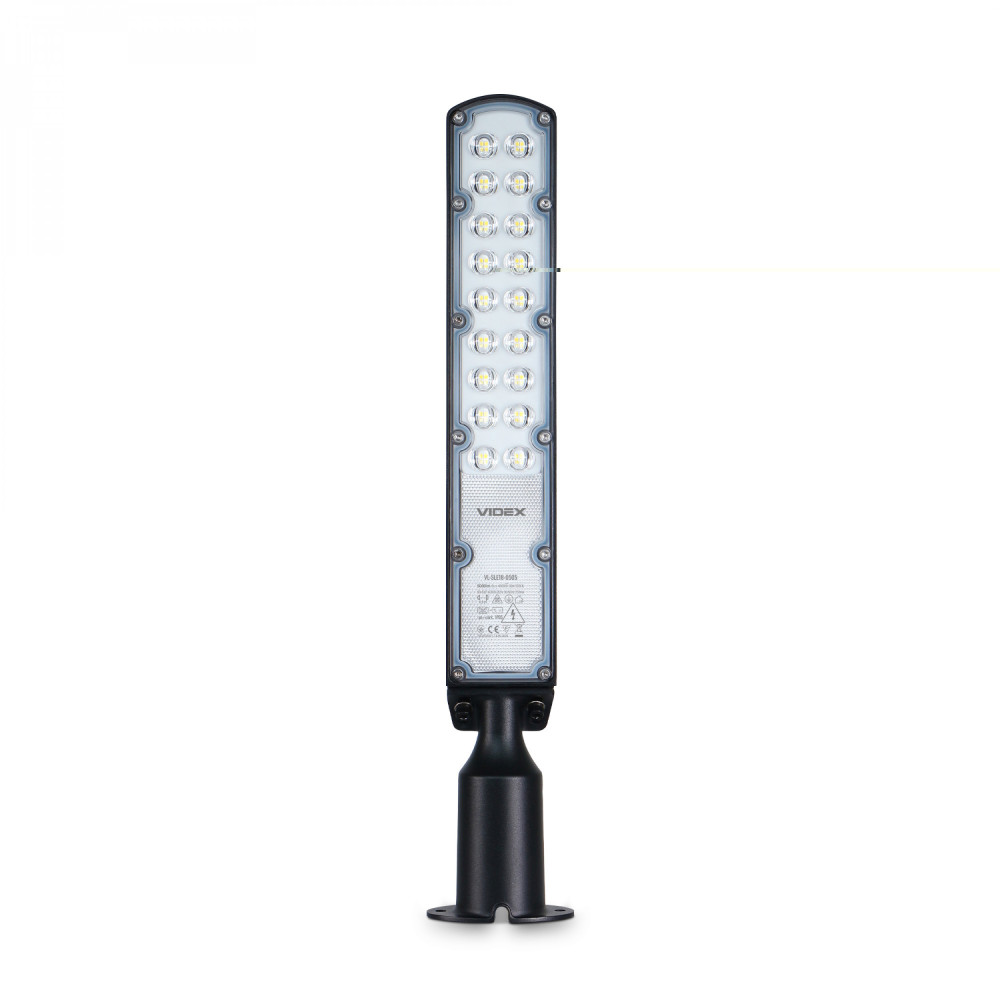LED Street Light VIDEX IP65 SLE18 50W 5000Lm 5000K 220V is designed for outdoor lighting of industrial areas, shop facades, commercial spaces, parking lots, park zones, residential areas, playgrounds, recreational areas, roads, and advertising or commercial locations. Thanks to its wide operating temperature range, it can be used in both low and high temperatures, providing high-quality illumination that meets modern standards over a long service life. The light features high impact protection – IK07, and a high level of protection against moisture and dust – IP65, making it highly resistant to rain, snow, and other weather conditions. A special protective coating prevents scratches during installation or other potential damage during operation. Once installed, it requires no maintenance throughout its service life. The color temperature is 5000K (daylight). The beam angle is 130° x 90°. The light has enhanced luminous efficacy – 100Lm/W. The total luminous flux is 5000Lm. LEDs serve as the light source, providing high-quality, even, and directed illumination. It has a long service life and high load resistance. The lifespan is not affected by switching frequency. Operating life is 30000 hours. It is built to last and comes with a 2-year warranty. When connected directly to the power grid, it ensures stable operation even with voltage fluctuations. Operating voltage is AC 180–265V. Free of harmful substances.