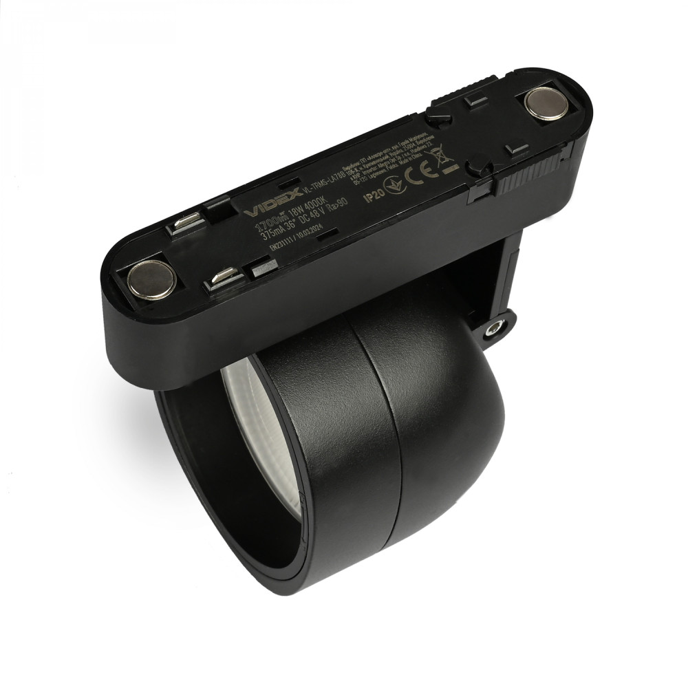 LED Light for Magnetic slim track light system VIDEX VL-TRMS-LA78B is designed for general lighting of all indoor spaces. ADVANTAGES AND FEATURES OF THE LIGHT:- power – 18W- rated for 20 000 ON/OFF cycles- luminous flux – 1700Lm- beam angle – 36°- color temperature – 4000K- service life – 30 000 hours- minimum distance from the illuminated object – 0.5m- ingress protection – IP20 (the product may only be used in dry indoor areas) PACKAGE CONTENTS:- Light fixture- User manual- Individual packaging INSTALLATION AND CONNECTION INSTRUCTIONSRead the manual before installation. The product can only be installed on modular tracks of the VL-TRMS-FT*** series, which are supplied separately. WARNING! This product must not be connected directly to a 220V mains supply. The fixture is powered by a low-voltage 48V system from external power supply units of the VL-TRMS-P**** series, which are supplied separately. One power supply unit can power several luminaires of different shapes within the same series. The total power of the luminaires must not exceed the maximum rated power of the power supply unit. Complete the installation and connection of the modular tracks and the power supply. Installation and connection of the track system and power supply must be carried out by a qualified specialist. All installation and connection work must be performed with the power switched off. Install the luminaire onto the track (see the manual). Before first use, check the correctness of the mechanical installation and wiring connections. The product may only be used with an electrical network that meets the energy requirements and quality standards established by law. This product may be stored and used only in a dry environment and without exposure to direct sunlight. WARNING! Do not look directly at the LED beam.