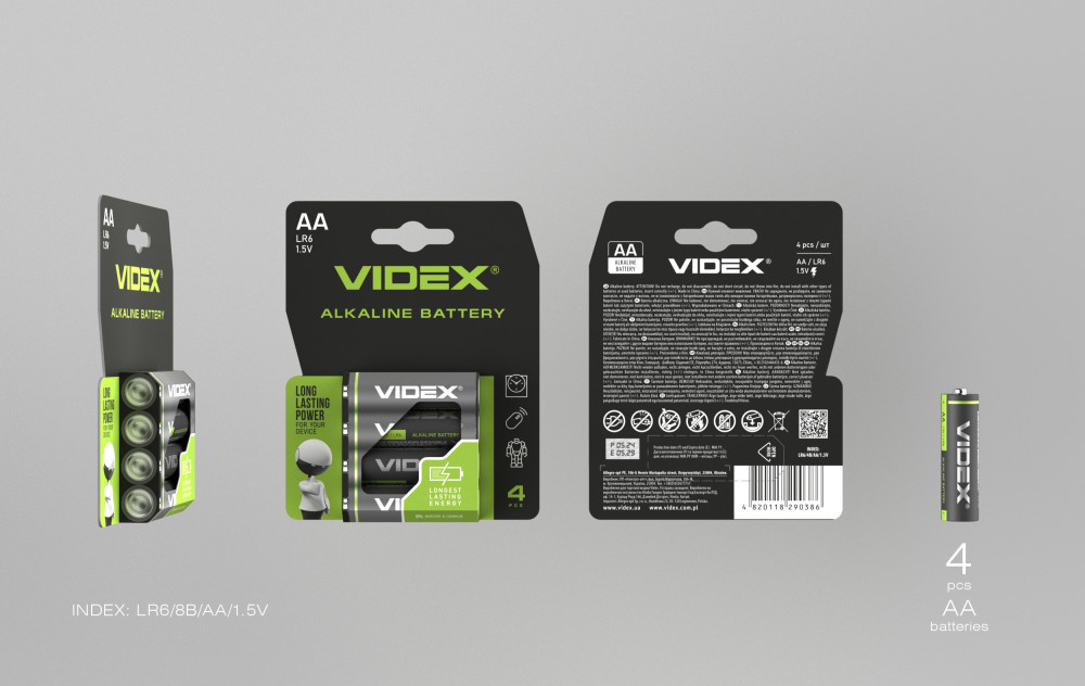 Alkaline battery Videx LR6/AA 4pcs Blister Card 1,5V, 2600mAh