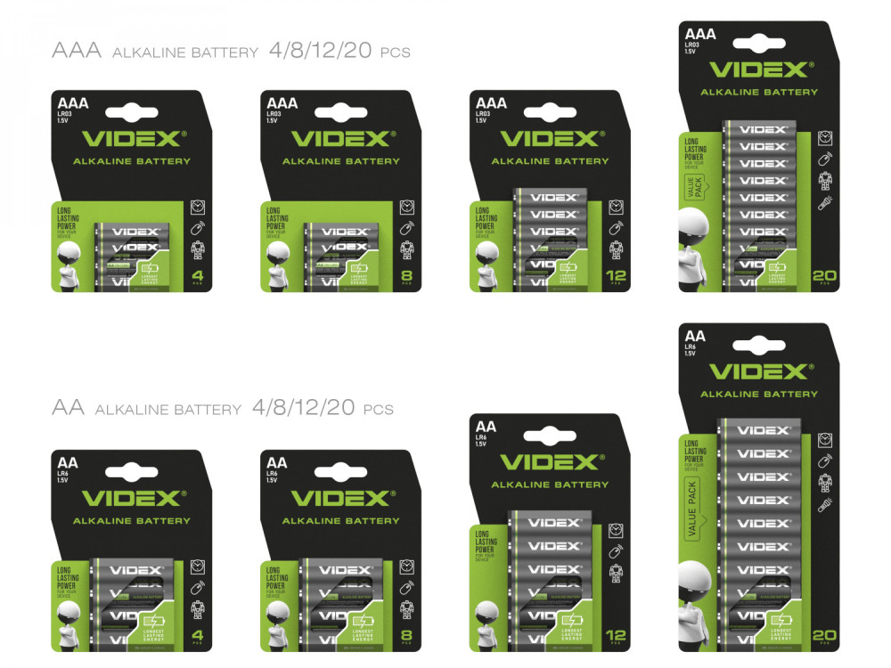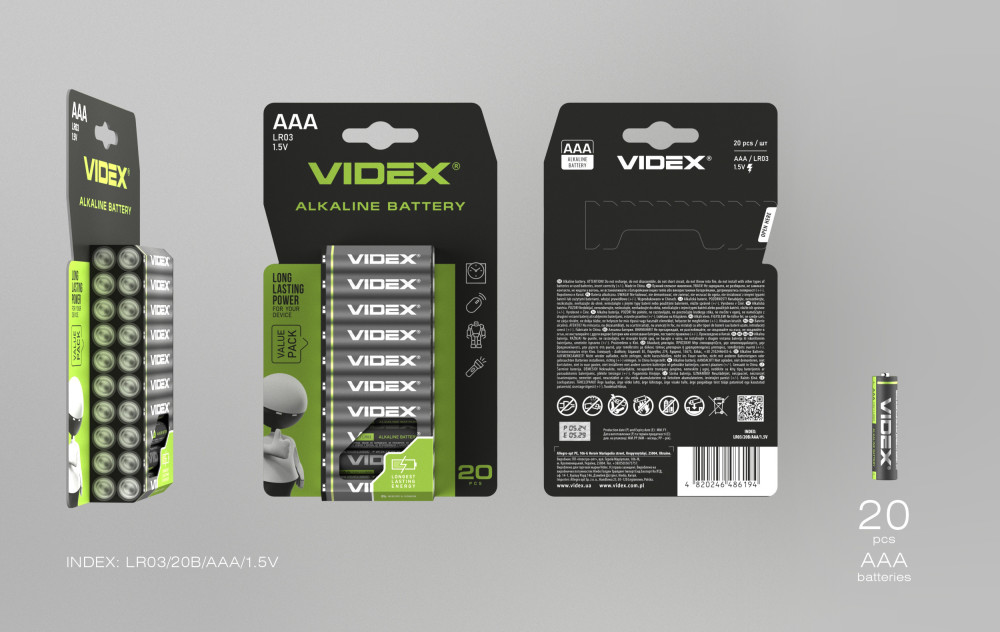 Alkaline battery VIDEX LR03/AAA 20pcs Blister Card 1,5V, 1200mAh