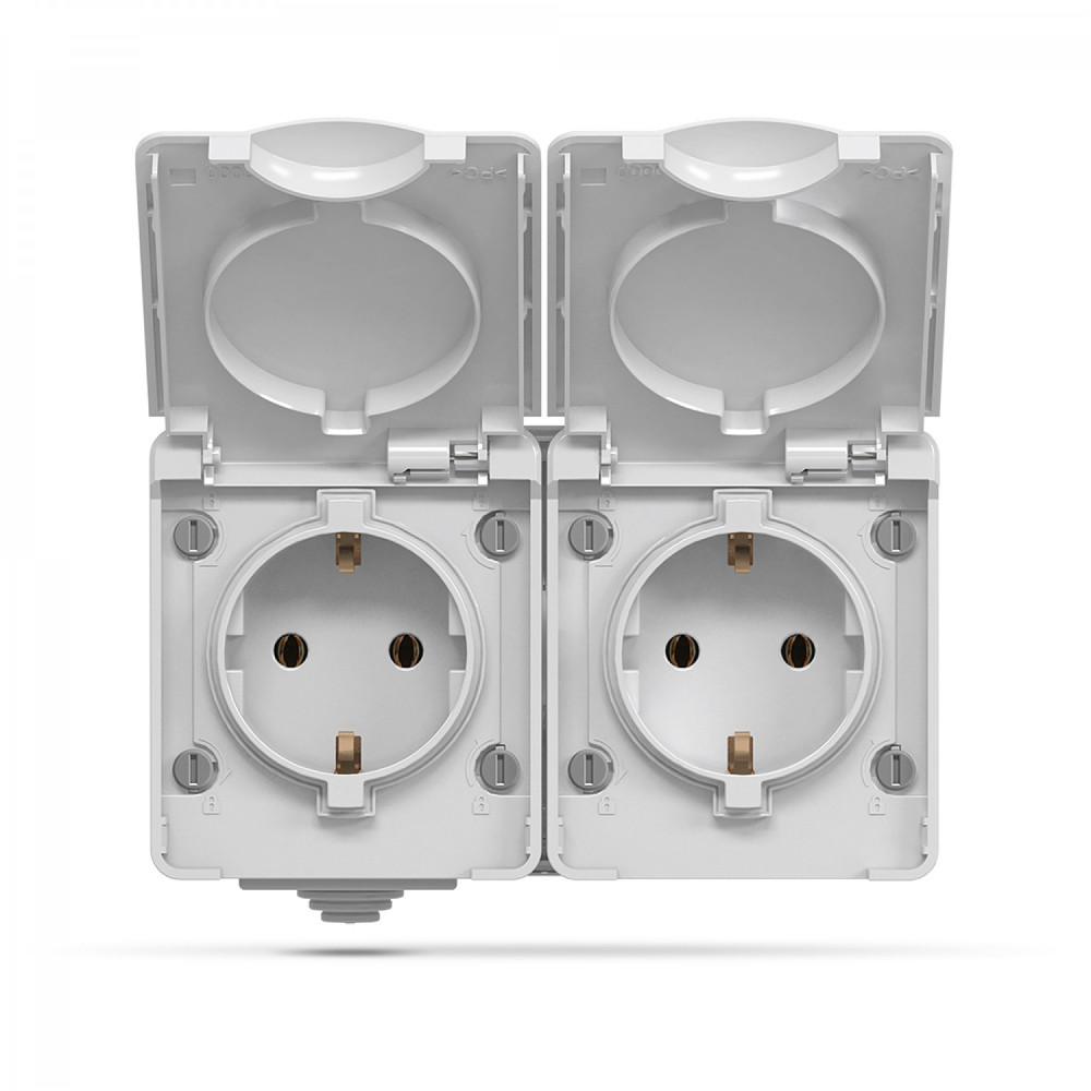 IP65 Double schuko socket, surface mounting, Gray VIDEX BINERA VF-BNW22G-G