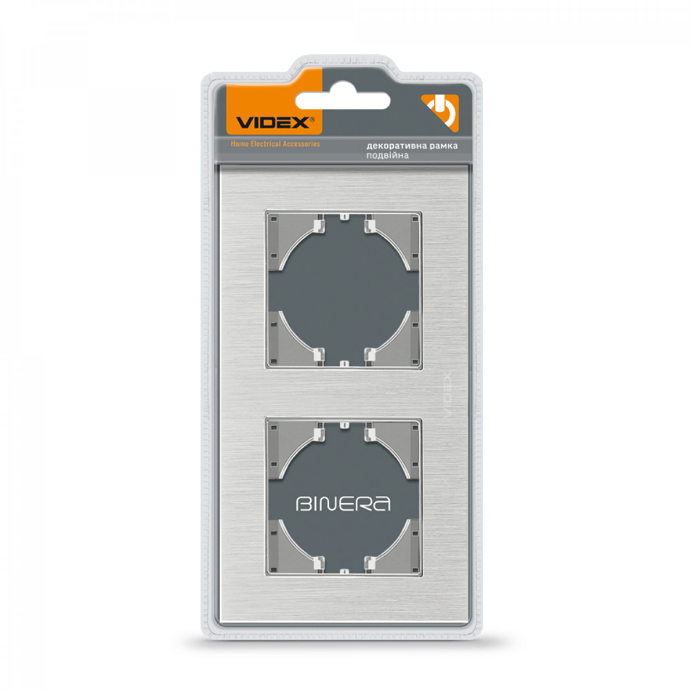 Frame silver aluminum 2 gang vertical VIDEX BINERA VF-BNFRA2V-SL