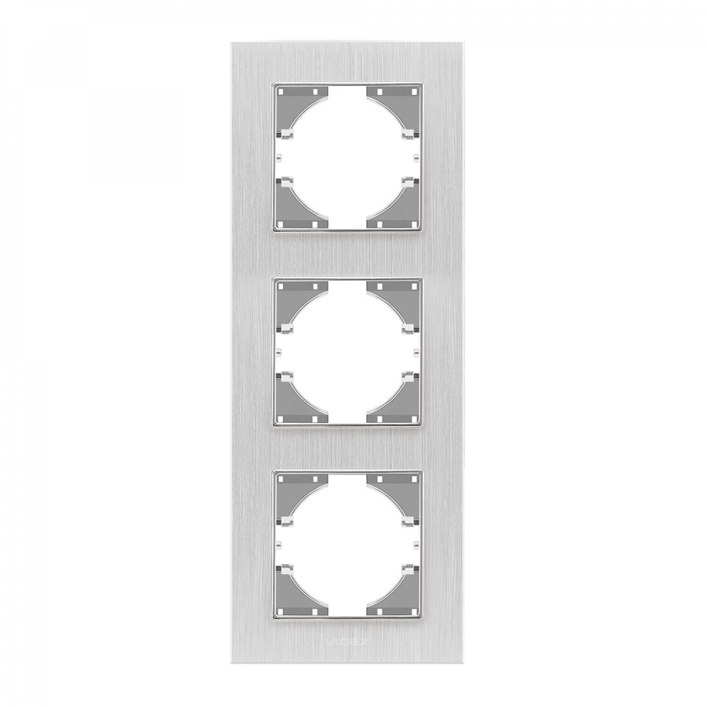 Frame silver aluminum 3 gang vertical VIDEX BINERA VF-BNFRA3V-SL