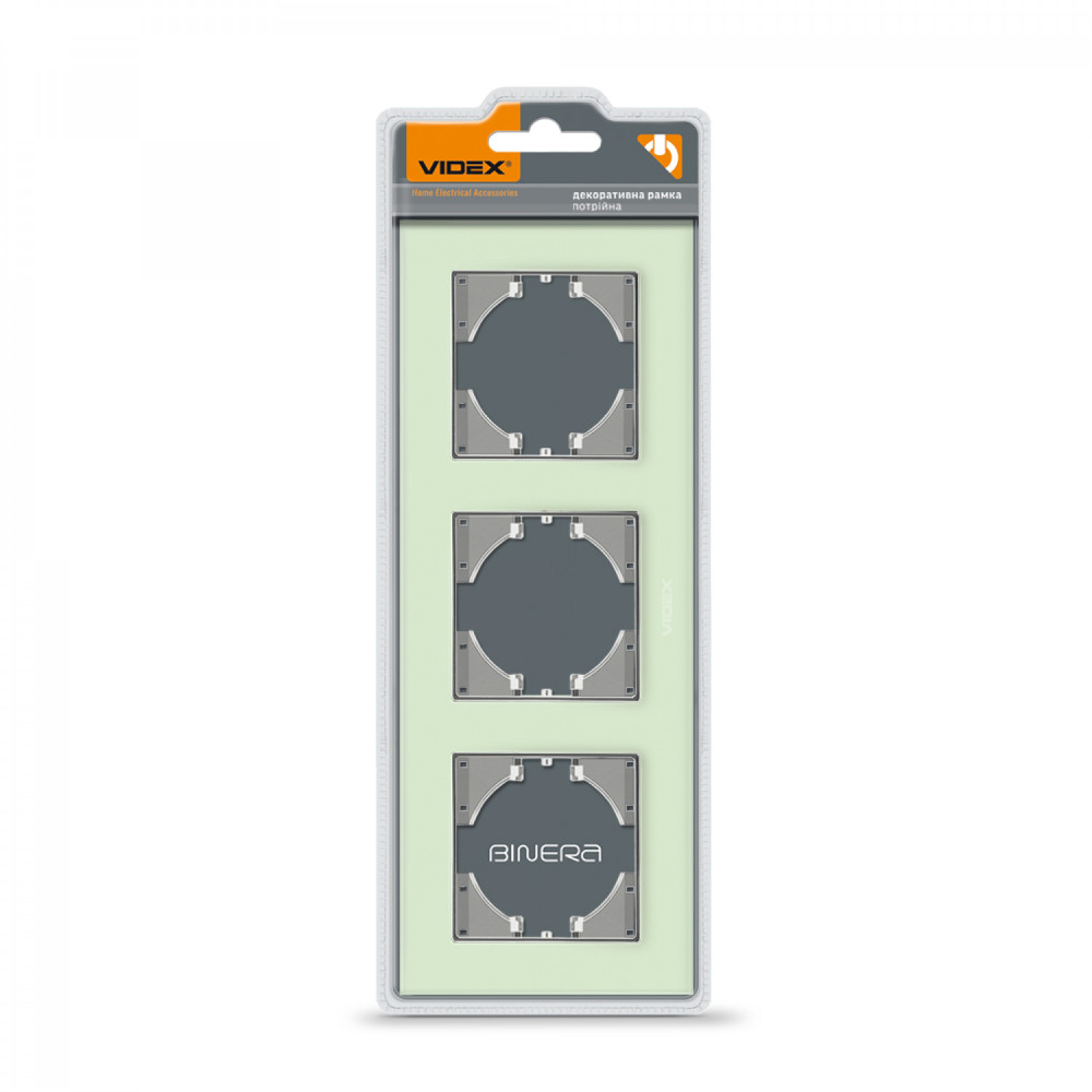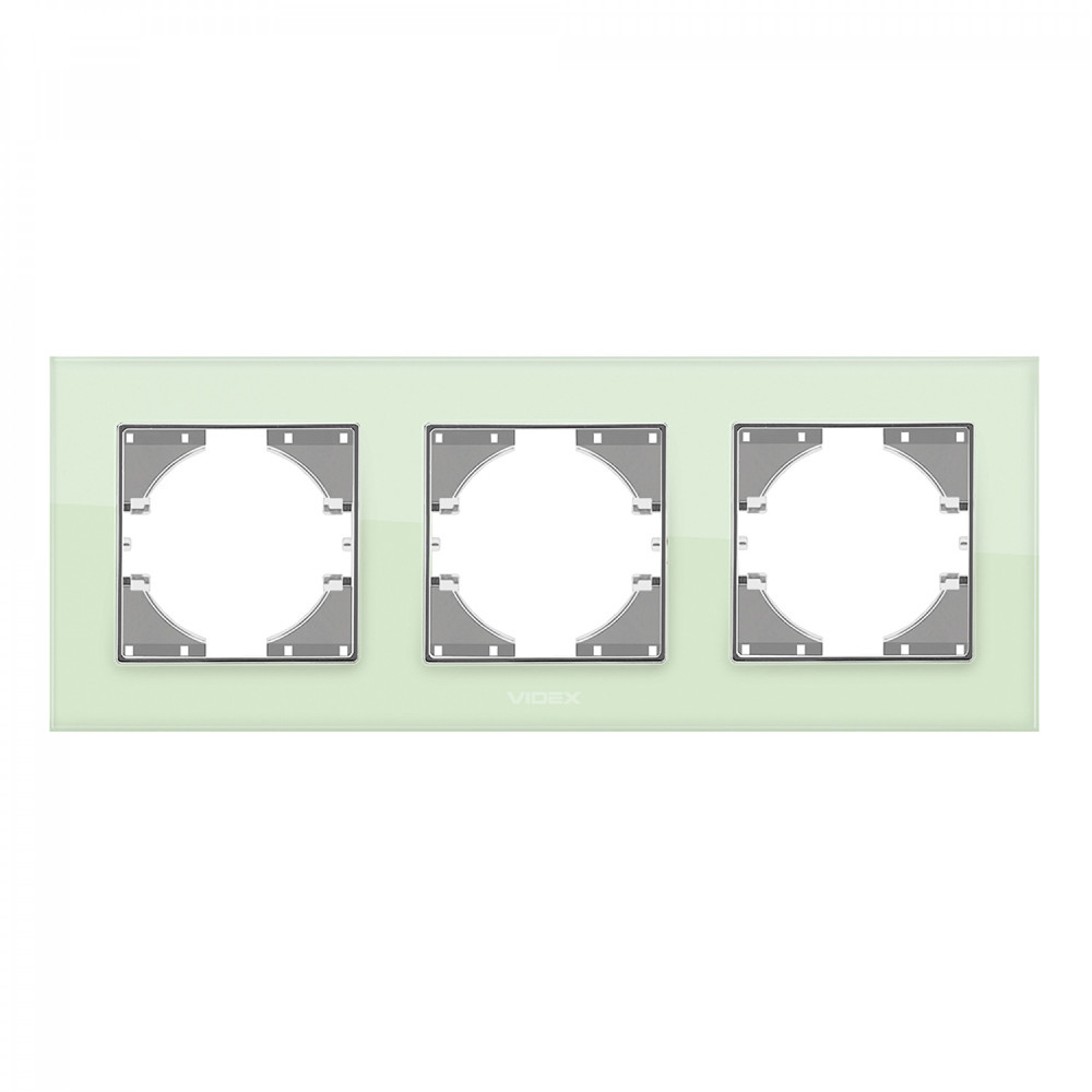 Frame green glass 3 gang horizontal VIDEX BINERA VF-BNFRG3H-GR