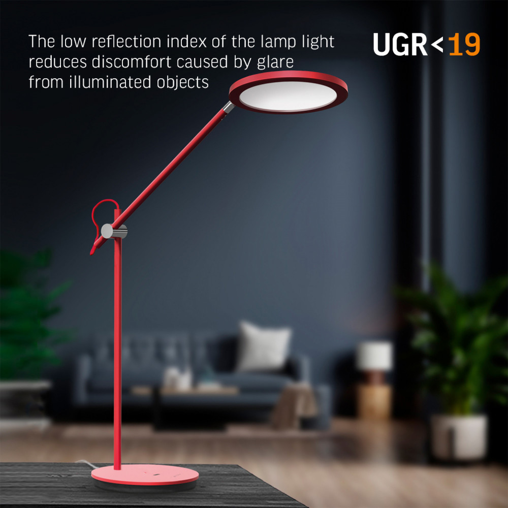 VIDEX VL-TF15R LED table lamp with URG<19 and touch control, which is designed to provide a comfortable and supportive environment in your room. The table lamp, despite the traditional characteristics, has implemented new modern technologies. Thanks to its unique ability to customize lighting, this device will become an indispensable assistant for people who spend a lot of time at their desk. Switching the LED lamp on and off is carried out using the "On/Off" touch button or quickly move your hand over the sensor and thus the lamp also turns on, move your hand over the sensor for the 2nd time and the lamp turns off. The sensor button "Timer" makes it possible to activate the function of automatically turning off the lamp after 45 minutes. At the end of 45 minutes, the lamp turns off. The Auto button automatically adjusts the lamp brightness level. The LED lamp will automatically set the most comfortable brightness level according to the ambient light in the room. The brightness is adjusted by a slow gesture of the hand over the sensor or using the "Night mode" button. The "Night mode" button is used to turn the night light on and off. Due to the high light quality index Ra ≤ 98, objects illuminated by the lamp, their colors and details are perceived as if illuminated by natural sunlight. URG is an indicator of light discomfort. The lamp leaves less glare on computer monitors and other reflective surfaces. URG<19 - the light is soft and even. Does not cause eye irritation and fatigue. Color temperature - neutral 4100K. The LED lamp provides flicker-free illumination, thus reducing eye strain. There is no ultraviolet and infrared radiation. The design allows the body to be rotated by 170°, and the diffuser by 180°, which in turn is very convenient and saves working space during the day and is convenient for operation and transportation. The scattering angle of this table lamp is 120°. The lamp has a large enough base for maximum stability in any position of the shade. An efficient and reliable LED light will last a long time, backed by a 2-year warranty. The adapter is included in the kit.