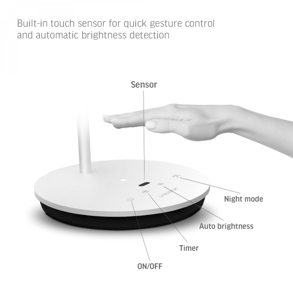 VIDEX VL-TF15R LED table lamp with URG<19 and touch control, which is designed to provide a comfortable and supportive environment in your room. The table lamp, despite the traditional characteristics, has implemented new modern technologies. Thanks to its unique ability to customize lighting, this device will become an indispensable assistant for people who spend a lot of time at their desk. Switching the LED lamp on and off is carried out using the "On/Off" touch button or quickly move your hand over the sensor and thus the lamp also turns on, move your hand over the sensor for the 2nd time and the lamp turns off. The sensor button "Timer" makes it possible to activate the function of automatically turning off the lamp after 45 minutes. At the end of 45 minutes, the lamp turns off. The Auto button automatically adjusts the lamp brightness level. The LED lamp will automatically set the most comfortable brightness level according to the ambient light in the room. The brightness is adjusted by a slow gesture of the hand over the sensor or using the "Night mode" button. The "Night mode" button is used to turn the night light on and off. Due to the high light quality index Ra ≤ 98, objects illuminated by the lamp, their colors and details are perceived as if illuminated by natural sunlight. URG is an indicator of light discomfort. The lamp leaves less glare on computer monitors and other reflective surfaces. URG<19 - the light is soft and even. Does not cause eye irritation and fatigue. Color temperature - neutral 4100K. The LED lamp provides flicker-free illumination, thus reducing eye strain. There is no ultraviolet and infrared radiation. The design allows the body to be rotated by 170°, and the diffuser by 180°, which in turn is very convenient and saves working space during the day and is convenient for operation and transportation. The scattering angle of this table lamp is 120°. The lamp has a large enough base for maximum stability in any position of the shade. An efficient and reliable LED light will last a long time, backed by a 2-year warranty. The adapter is included in the kit.