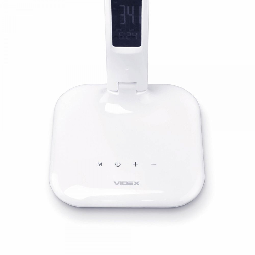 The VIDEX TF05 RIO LED table lamp is a multifunctional lighting device that will be a great choice for studying, reading or working in the office. There is a wide range of modes for comfortable work: Color temperature change - 3000K, 4000K, 5500K; Brightness change - 5 levels. Control is carried out by means of touch buttons. The large informative backlit display showing useful information such as temperature, time, calendar and alarm clock. You can turn off the backlight by pressing the ON/OFF button for 3 seconds. The energy-efficient lamp can be powered either by the included adapter or, for example, from your computer's USB port. The lamp also has an outstanding service life of 30,000 hours. The light of the lamp does not flicker and does not tire the eyes during prolonged operation. The body of the lamp is made of smooth and shiny white plastic.
