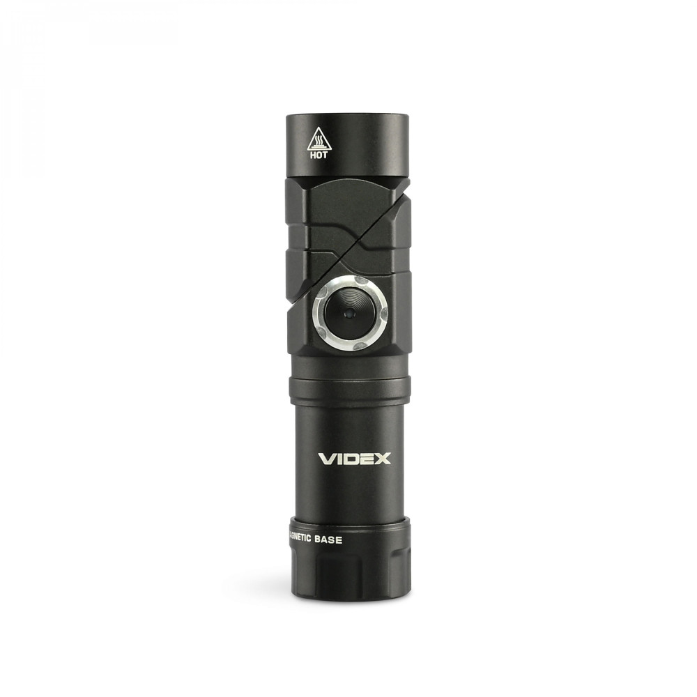 LED Portable Flashlight VIDEX VLF-A244RH 600Lm 5000K is designed for personal use in the dark or in unlit indoor areas. Key features include a rotatable flashlight head, magnetic base, durable body, light beam range, and two red LEDs. It allows selecting the desired operating mode. The flashlight uses a head strap made of wear-resistant, soft-textured material, ensuring comfortable use. Maximum brightness is 600 Lm. Equipped with a Luminus SST20 LED, which improves the photoelectric conversion efficiency while achieving high reliability and performance. Flashlight Operation: - Pressing the ON/OFF button with a short delay (0.5 sec) turns the flashlight on or off, depending on its current state. - A single press of the button in the ON state cycles through the modes. A double press activates red light mode; in this mode, a single press switches between red light modes. To exit red light mode, double-press the button again, returning to white light mode. - Long press (3 sec) turns the flashlight off and locks it if it is on, or simply locks it if off, preventing accidental activation in a pocket or bag. Repeat the long press to unlock the flashlight. Operating Modes: TURBO (Maximum Light Output Mode) – brightness 600Lm. Beam distance is 105m. Runtime 1h. Luminous intensity 2800cd. MIDDLE (Medium Light Output Mode) – brightness 300Lm. Beam distance is 60m. Runtime 3h. Luminous intensity 800cd. LOW (Low Light Output Mode) – brightness 150Lm. Beam distance is 50m. Runtime 4h 30min. Luminous intensity 560cd.MOON (Night Mode / Minimum Brightness) – brightness 20Lm. Beam distance is 13m. Runtime 17h. Luminous intensity 40cd. RED HIGH (Red Light Maximum) – brightness 18Lm. Beam distance is 6m. Runtime 6h. Luminous intensity 10cd. RED LOW (Red Light Minimum) – brightness 5Lm. Beam distance is 2m. Runtime 20h. Luminous intensity 0.8cd. RED FLASH (Red Flashing Light) – brightness 5Lm. Runtime 30h. Runtime tested with standard 16340 800mAh battery. Actual parameters may vary depending on environmental conditions. Automatically memorizes the last selected mode. LED indicator on the button shows battery charge level: - Green – fully charged (100–85%) - Blinking Green – 85–50% - Red – 50–25% - Blinking Red – 25–1% Charging is available via USB-C cable. Uses 16340 rechargeable batteries. WARNING! Never operate the flashlight while charging. The flashlight is highly protected and adapted for use in harsh and extreme conditions. It can withstand mechanical stress and drops from 1m without damage. It has IP66 ingress protection. The head strap is made of thin, breathable material. A modern, high-performance flashlight perfect for outdoor activities. Easy to use. Warranty is 3 years for the flashlight, 1 year for the battery.