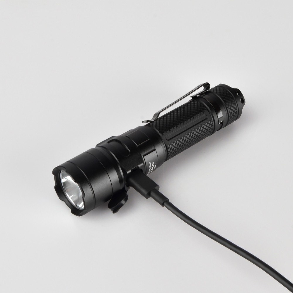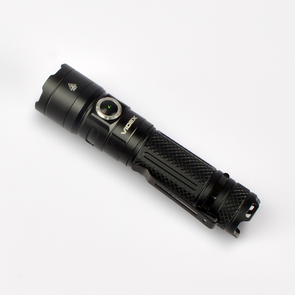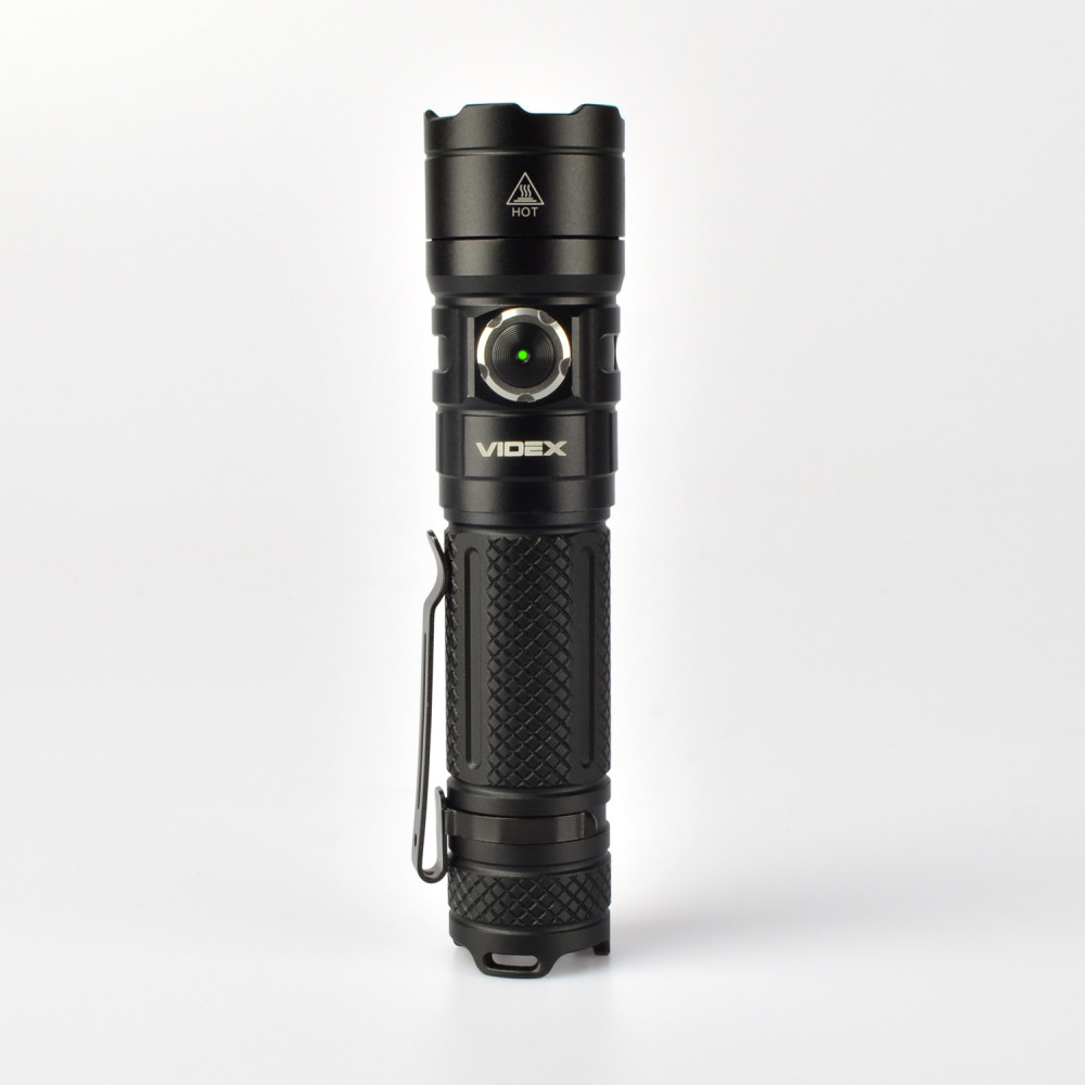 LED Portable Flashlight VIDEX VLF-A406 4000Lm 6500K is designed for individual use in the dark or in unlit indoor environments. The main features include tightness, a reliable housing, and long beam distance. The flashlight is equipped with a metal clip for convenient and secure attachment. It allows you to select the required operating mode. A long press of the button allows you to turn the flashlight on and off. A short press of the button when the light is on allows you to select the required operating mode of the flashlight: TURBO – with the highest brightness of 4000Lm. The illumination distance reaches 200m. Operating time is 3h 15min. Luminous intensity is 9400cd. The operating time in TURBO mode is the total time tested with the overheating protection enabled. HIGH (Maximum power mode) – light brightness of 1140Lm. The illumination distance reaches 111m. Operating time is 3h 30min. Luminous intensity is 3060cd. MIDDLE (Medium power mode) – light brightness of 550Lm. The illumination distance reaches 76m. Operating time is 7h 45min. Luminous intensity is 1460cd. LOW (Minimum power mode) – light brightness of 300Lm. The illumination distance reaches 57m. Operating time is 14h 30min. Luminous intensity is 800cd. MOON (Night mode) – the longest operating time possible in this mode is 180h, while generating a luminous flux of 30Lm. The illumination distance reaches 35m. Luminous intensity is 320cd. STROBE – light brightness of 1140Lm. The illumination distance reaches 111m. Operating time up to 4h. Luminous intensity is 3060cd. The discharge time was tested with the standard 21700 4000mAh battery and can be extended by using a higher-capacity battery. The above parameters may vary depending on the environment. Automatically memorizes the selected mode. The flashlight can be locked/unlocked by double-pressing the button. The LED indicator on the button notifies about the flashlight battery level: - Lights green when fully charged (100–85%) - Flashes green when charged (85–50%) - Lights red when charged (50–25%) - Flashes red when charged (25–1%) Charging via a USB-C cable is available. 21700 type rechargeable batteries are used as power sources. WARNING! It is strictly prohibited to use the flashlight while charging. Well protected and adapted for use in difficult and extreme conditions. Easily withstands mechanical loads and drops from height. It can fall from a height of 1m without being damaged. The durable housing also resists moisture. Water protection standard – IP68 (2m underwater). An excellent, modern, high-efficiency flashlight will be a great companion during outdoor activities. Convenient to use. Warranty is 3 years for the flashlight and 1 year for the battery.