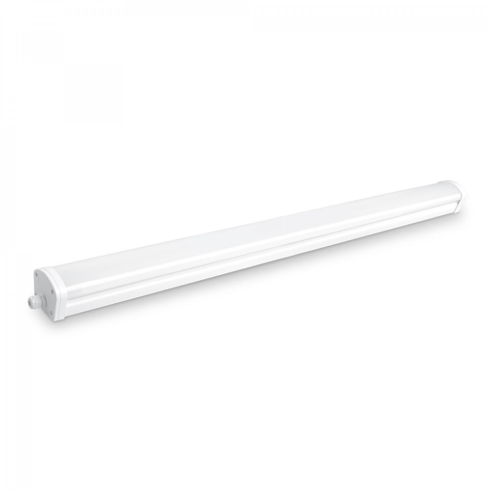 LED linear luminaire with protection against dust and moisture. Completely protected from environmental influences such as rain, dirt and mechanical damage. This product is intended for outdoor use or in areas with high levels of moisture or contamination. Used for lighting parking lots, warehouses, supermarkets, car washes, etc. A feature of this luminaire is the LED module, which can be replaced if necessary. It is not necessary to change the whole lamp. High light output at 110 lm/W and a significant service life of up to 50,000 hours, as confirmed by a 3-year warranty. There is no flicker, infrared or ultraviolet radiation during operation, this reduces the load on vision and allows you to use the lamp indoors.