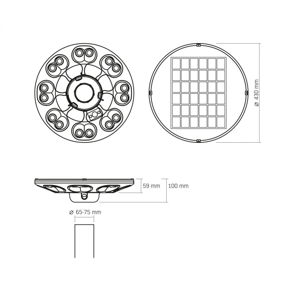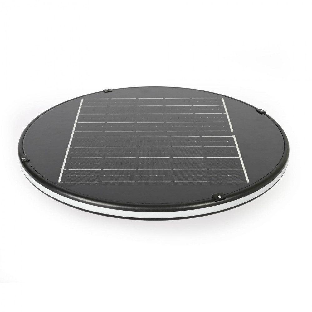 LED Solar Park Light with motion sensor VIDEX VL-GLSO-1254-S is a modern and efficient lighting fixture designed for independent illumination of sidewalks, park paths, parking lots, courtyards, and other open spaces. The light operates on a built-in battery and does not require connection to the mains. Thanks to its modern design and advanced technology, it blends harmoniously into any outdoor environment, providing effective lighting and a comfortable space for users. PACKAGE CONTENTS: - Light fixture; - Mounting connector; - Hex screws (3pcs); - Hex nuts (3pcs); - PVC caps (3pcs); - Remote control; - AAA batteries (2pcs); - Individual packaging. FEATURES: - High-efficiency solar panel; - High-quality optical lenses and illumination; - Beam angles – 60° and 360°; - Luminous flux – 1400Lm; - Light color temperature – 5000K + 3000K; - Long battery runtime – up to 14 hours; - Dust and water protection level – IP54; - Impact protection class – IK06; - Remote control; - Built-in motion sensor; - Intelligent operation mode. INSTALLATION INSTRUCTIONS Read the user manual before installation and use. The light fixture and solar panel are inseparable parts. Individual parts cannot be used separately. The fixture should be installed on a stable base parallel to the ground. To complete installation, follow these steps: a) Remove the mounting connector and loosely install screws and nuts; b) Insert the mounting connector and rotate it to the locked position following the arrow; c) Ensure the mounting base fits poles with a diameter of 65–75mm. Place the connector on the pole and then use a tool to securely tighten the screws with the pole (pole and tool not included); d) Cover screw holes with PVC caps. Press and hold the switch on the control panel for 2 seconds to turn on the light and complete the installation. USER INSTRUCTIONS The solar panel converts sunlight into electricity and charges the battery. The light control circuit automatically charges the battery during the day (>10 lux) and discharges it at night (<5–10 lux). Ambient temperature for charging should be above 0°C, and for operation (discharging) above -10°C. Note: - Before regular use, make sure the light is fully charged for 8 hours under direct sunlight. - Avoid shading the solar panel with trees, buildings, or other objects, as this may reduce performance. REMOTE CONTROL: 1. Forced On. Press once to turn on the light. The «Auto» discharge program will be applied. 2. Forced Off. Press once to turn off the light. 3. Halo. Press to enable additional decorative lighting (3000K). The halo will turn on together with the main light. Press again to turn it off. 4. Induction Mode¹. Press to activate motion sensor mode. No motion detected – 8% brightness; motion detected – 100% brightness. A steady green indicator means the mode is active. 5. 4h + Induction¹. The first 4 hours use the «Auto» program, then the motion sensor mode is applied (no motion – 8%; motion – 60%). A blinking green indicator means the mode is active. 6. 3-hour Timer¹. Runs for 3 hours at 75% brightness, then automatically turns off. 7. 6-hour Timer¹. Runs for 6 hours with the «Auto» discharge program, then automatically turns off. 8. «Auto» Mode¹. Operates first 0.5 hours at 60% brightness, next 1.5 hours at 50%, next 4 hours at 30%, remaining 8 hours at 10% or until battery discharge. ¹The selected mode will be remembered and applied every evening. Additional operation recommendations are provided in the user manual. During long-term storage, it is recommended to keep the battery charged to about half of its capacity to extend its lifespan. Do not store with a fully discharged battery. To maintain original performance, clean the solar panel every 3–4 months. Warranty is 2 years.