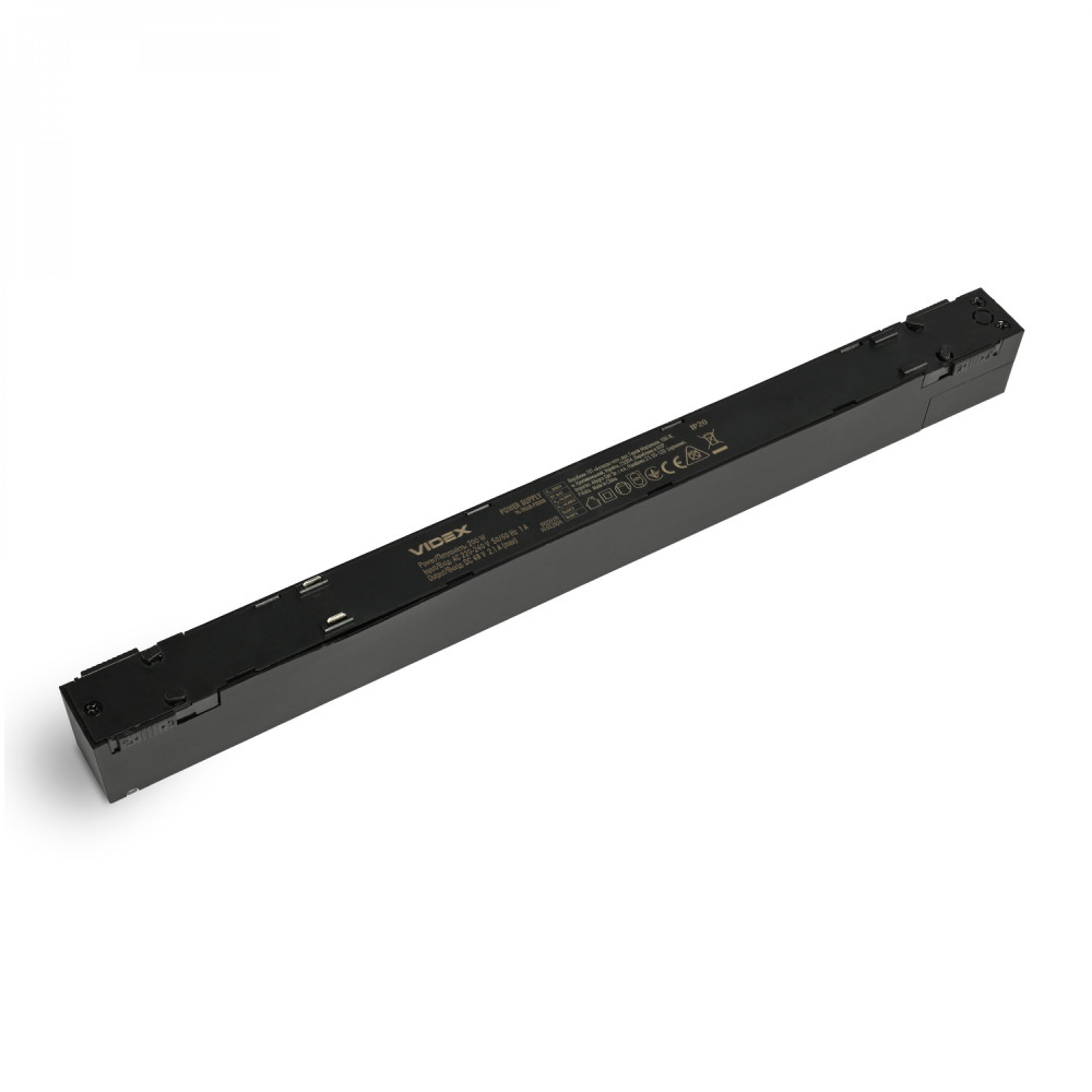 Power supply for magnetic slim track light system VIDEX VL-TRMS-P200B 200W is a power source for the LED magnetic track lighting system. The product is intended for use as an external general power supply for VIDEX LED light sources of the VL-TRMS-****** series. INSTALLATION AND CONNECTION INSTRUCTIONS Read the instructions before installation. The product can be installed either directly onto VL-TRMS-FT**** series tracks or remotely using additional accessories that can be purchased separately. Please perform installation and connection according to the wiring diagram provided in the instructions. WARNING! Installation of the power supply unit and track system must be carried out by a qualified specialist. All installation and connection work must be performed with the power switched off. - The total power of the LED light sources connected to one power supply unit must not exceed its maximum output power. - The maximum track length must not exceed 15 meters! After installing the power supply unit and tracks, the corresponding light sources can be mounted onto the track. Before first use, check the correctness of mechanical installation and electrical connection. The product may only be used in a network that meets the energy requirements and quality standards established by law. FUNCTIONAL CHARACTERISTICS This product is intended for indoor use only. The device has no moisture protection (IP20). The power supply unit is not suitable for dimming light sources. Rated service life — 30 000 hours. Number of switching cycles before failure — 20 000 (ON/OFF). Protection class against electric shock — Class II. The power supply unit operates independently of the light source. It is equipped with a transformer protected against short circuits. The product contains no harmful substances. The shelf life before first use is unlimited. MAINTENANCE AND SAFETY INSTRUCTIONS All maintenance work must be carried out with the power switched off and after the device has cooled down. Do not cover the power supply unit with thermal insulation materials; ensure free air circulation. Clean only with soft and dry cloths. Do not use chemical cleaning agents. The device must be powered only by the rated voltage or a voltage within the specified range. Do not use the product with damaged wiring or connection points. WARNING! Do not attempt to repair or disassemble the product, as this may impair its functionality and void the warranty. The product must not be used in adverse conditions, such as dust, water, moisture, vibration, explosive atmosphere, fumes, or chemical vapors. A used or damaged product must be disposed of in accordance with applicable regulations. Failure to follow these rules may result in fire, burns, electric shock, bodily injury, and other material or immaterial damage. The manufacturer is not liable for any damage caused by non-compliance with the above instructions.